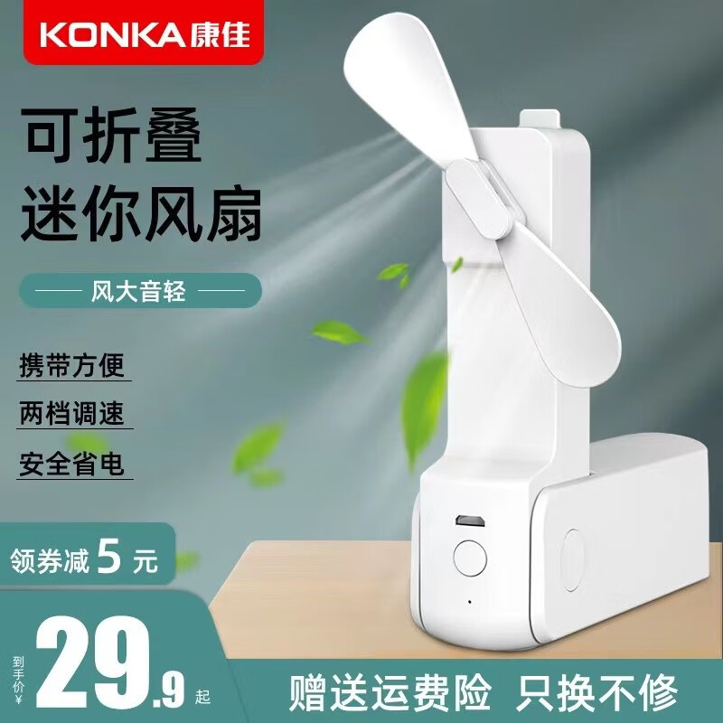康佳(KONKA) USB小风扇便携式手持迷你学生小型充电静音电扇可折叠 USB风扇手持+折叠