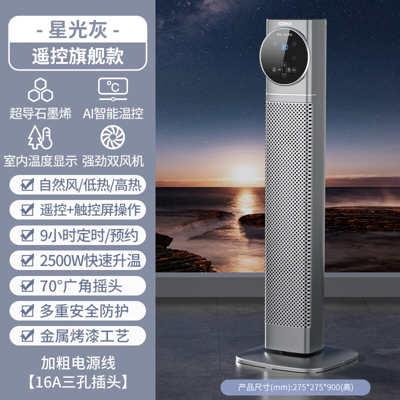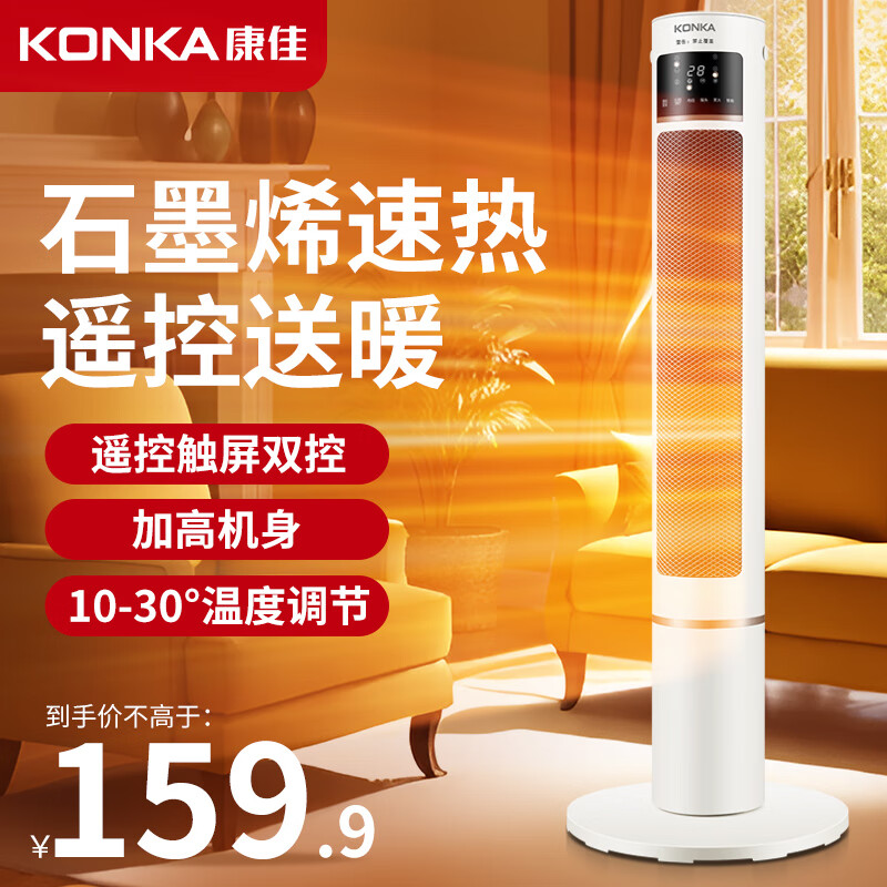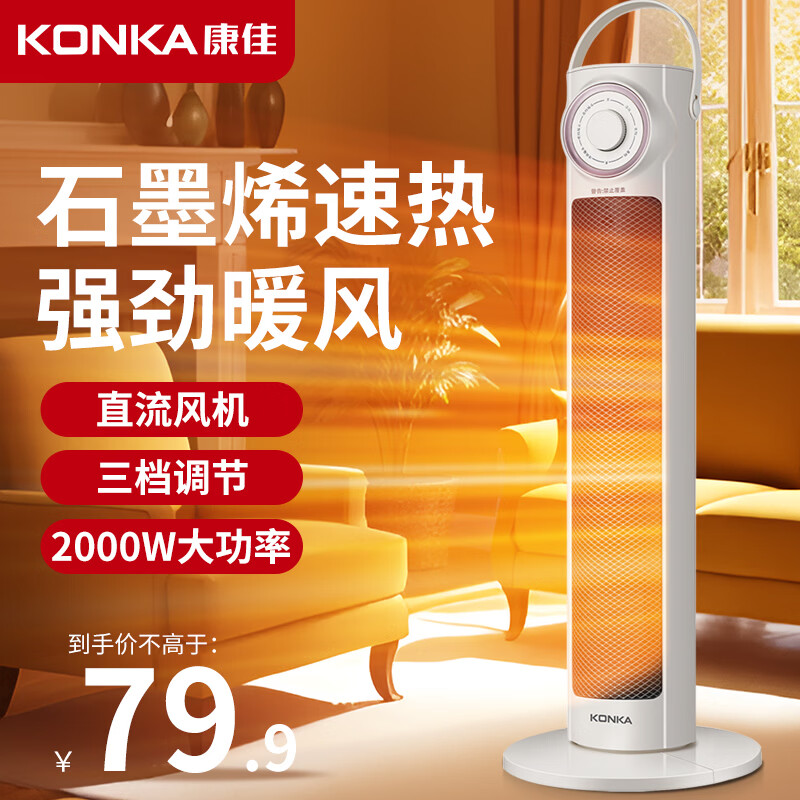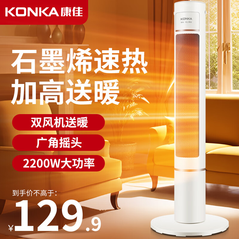 康佳(KONKA)取暖器家用石墨烯暖风机立式电暖气浴室电暖风节能热风机速热暖风扇摇头电暖器烤火炉 遥控加高款【850MM机身+石墨烯+双风机送风】