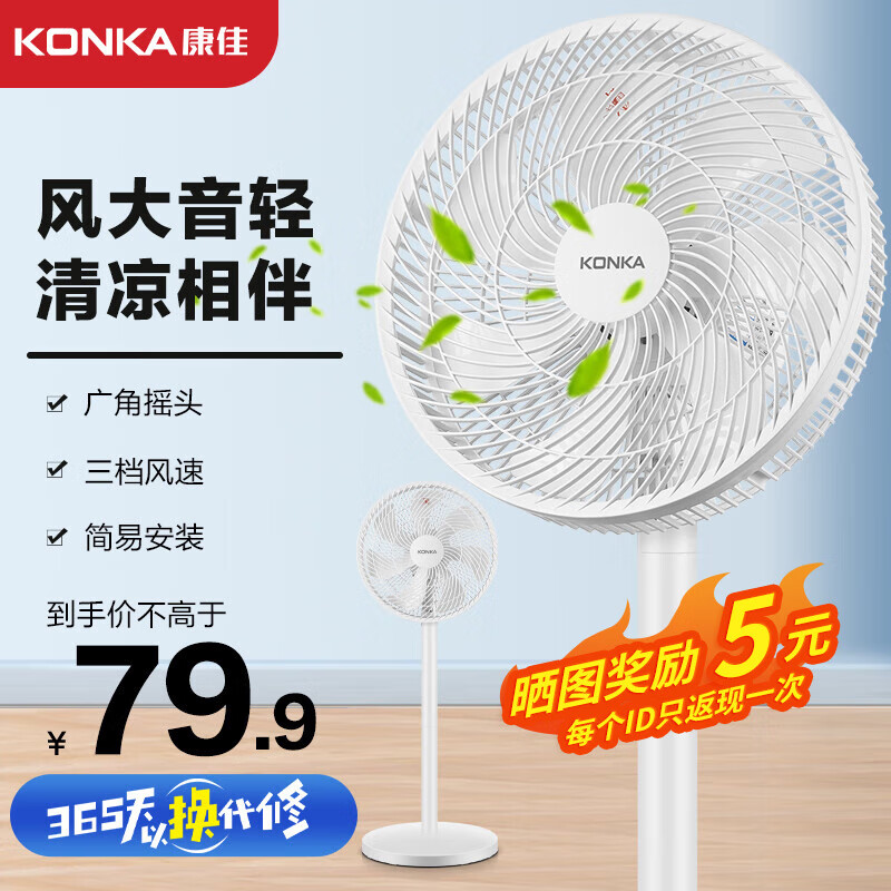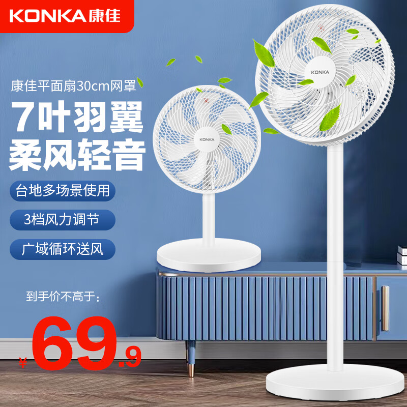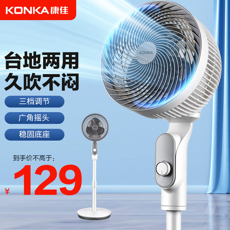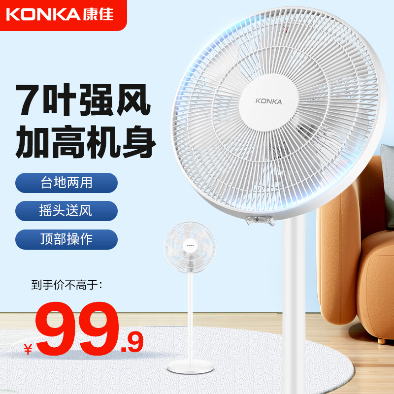 康佳(KONKA)空气循环扇电风扇家用风扇智能语音台式小风扇八字摇头立式涡轮换气扇轻音电扇遥控落地扇 风柔音轻【机械款+母婴柔风+左右摇头】