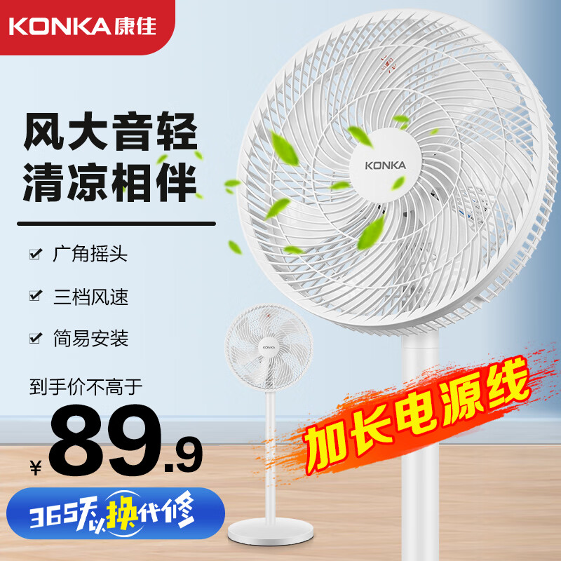 康佳(KONKA)电风扇落地扇家用立式遥控定时电扇台扇机械摇头电扇办公大风量室宿舍家电扇空气循环风扇 机械加大款【7叶强风】延长线
