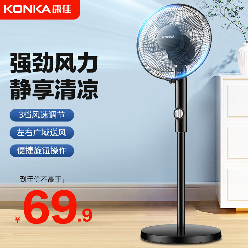 康佳(KONKA)电风扇落地扇家用立式机械电扇台扇摇头电扇办公大风量室宿舍家电扇空气循环风扇 机械加大款【7叶强风】