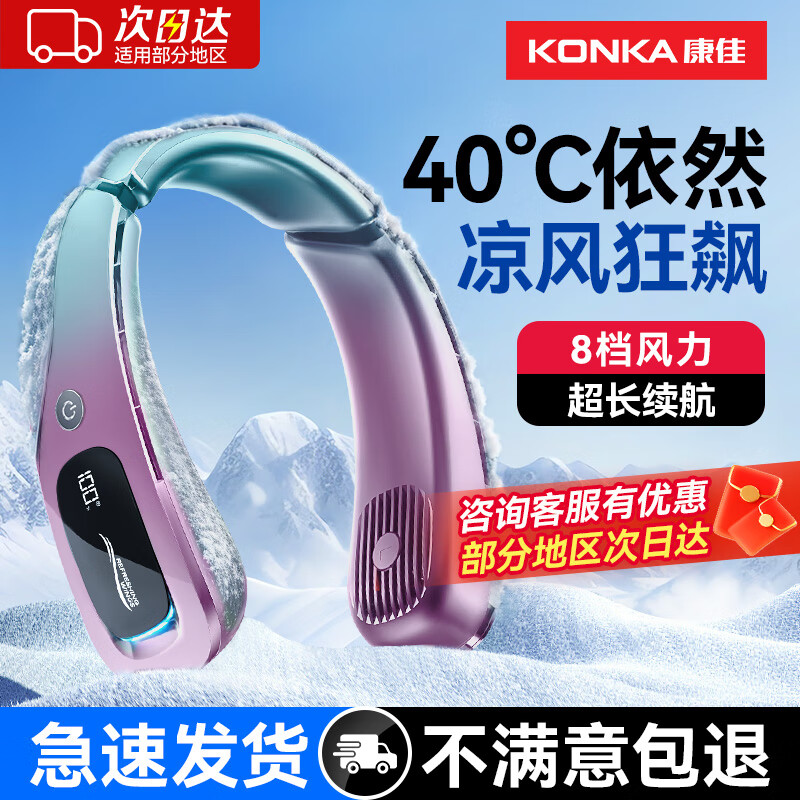 康佳康佳挂脖风扇小型便携戴式随身带脖子颈凉风学生小电风扇大风力-B 升级款【一键清凉】马卡龙色
