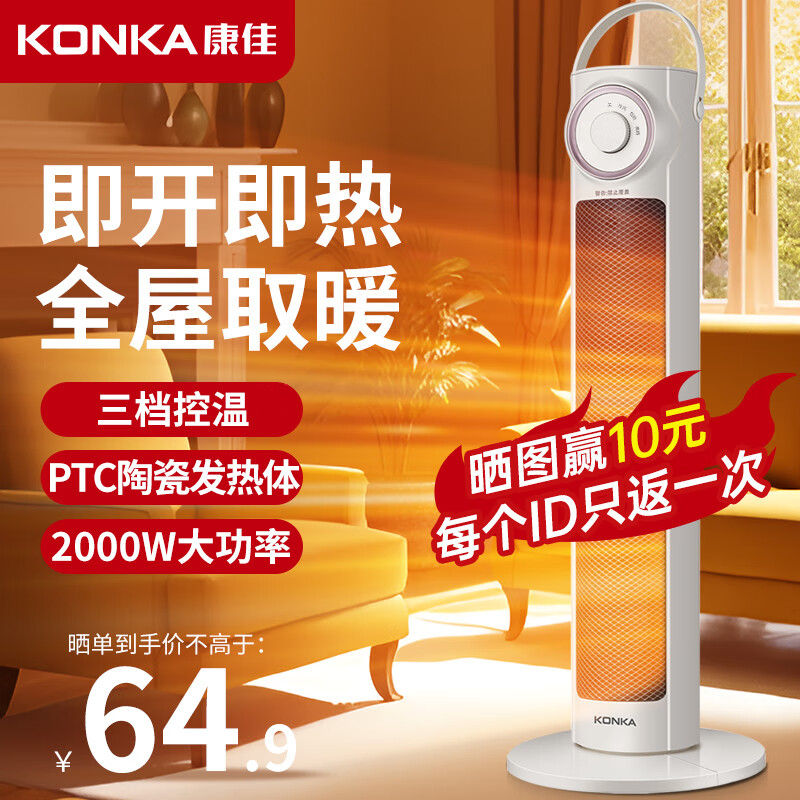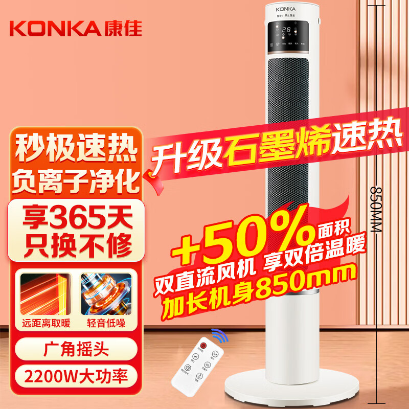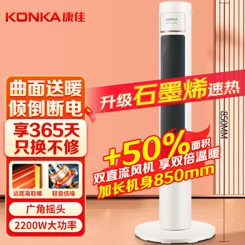 康佳(KONKA)取暖器家用石墨烯暖风机立式电暖气浴室电暖风节能热风机速热暖风扇摇头电暖器烤火炉 机械升级款【650MM机身+石墨烯+广角摇头】
