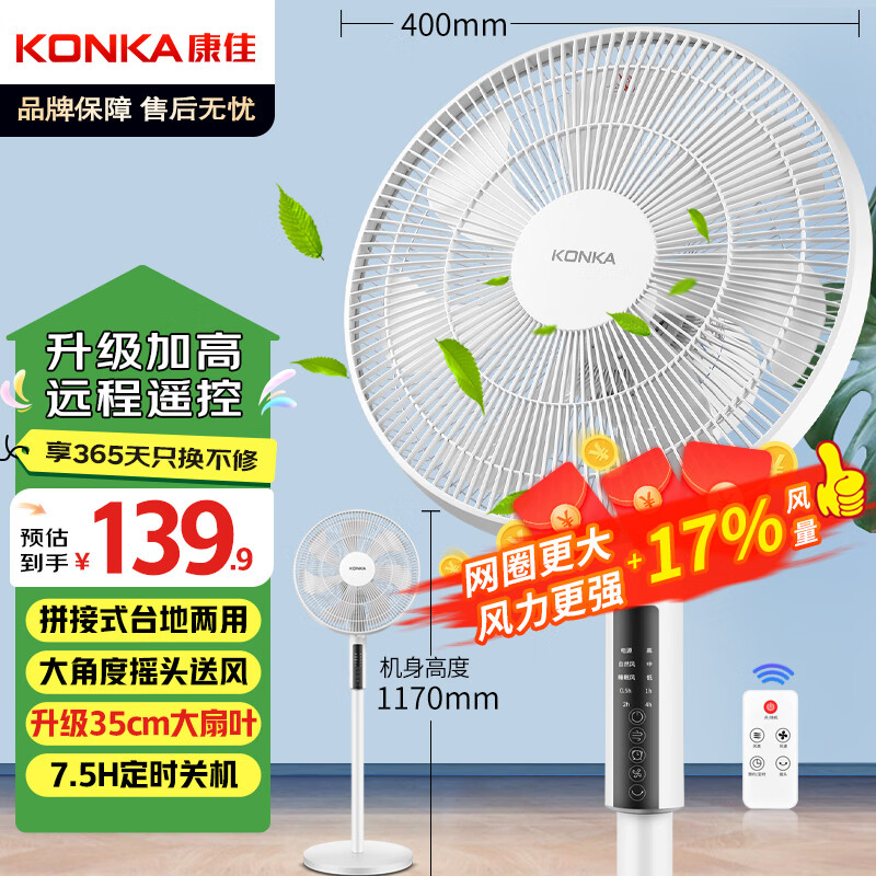 康佳(KONKA)电风扇落地扇家用立式遥控定时电扇台扇机械摇头电扇办公大风量室宿舍家电扇空气循环风扇 遥控加大款【7叶强风+远程遥控】