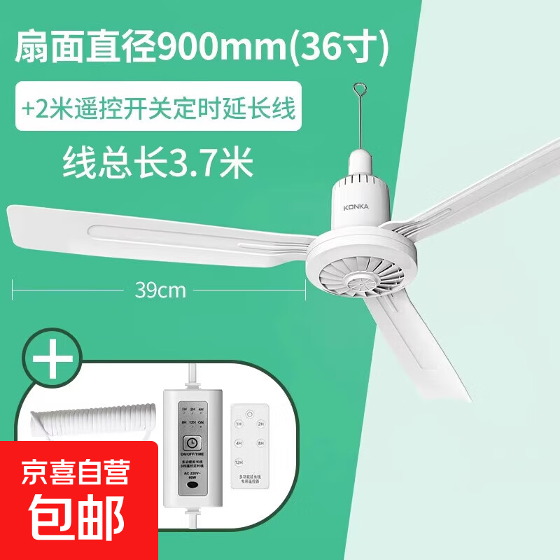 康佳电风扇家用吊扇电扇大风力制冷轻音遥控顶扇家用客厅宿舍办公室教室 标品90cm+2米遥控延长线