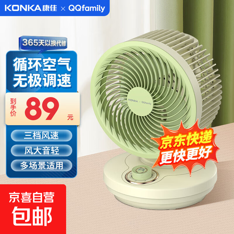康佳电风扇空气循环扇台扇小风扇涡轮扇家用节能对流风扇台式音轻定时摇头办公学生宿舍桌面风扇 QQfamily联名 旋钮+自动摇头