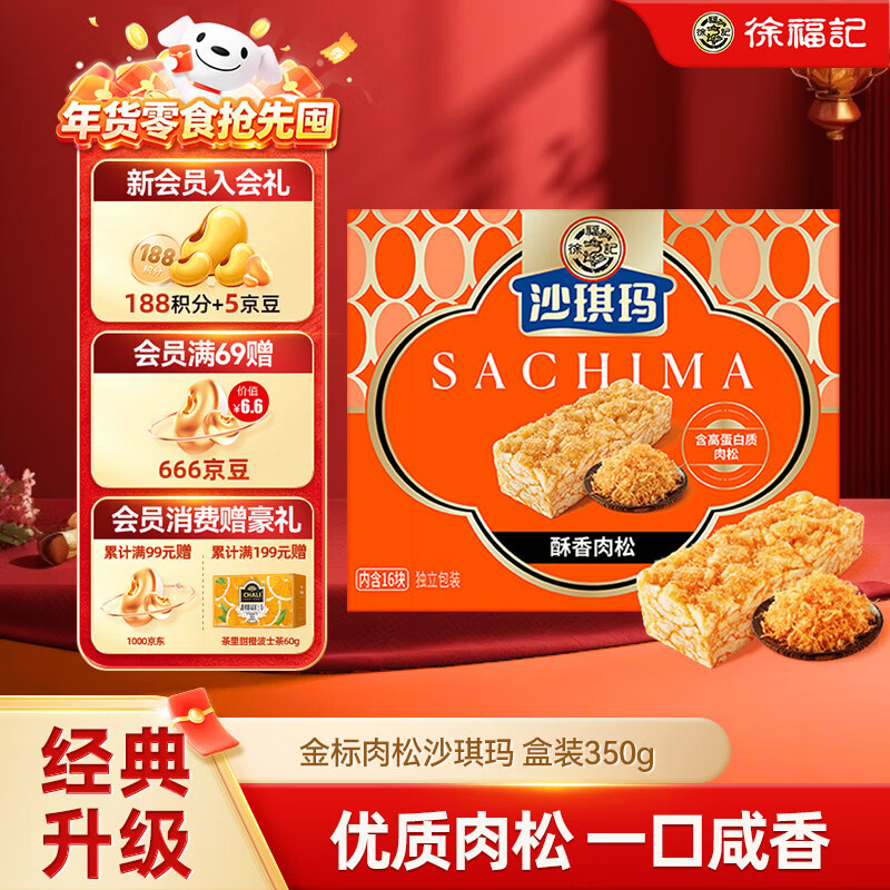 徐福记金标风味醇香肉松沙琪玛 盒装350g约16枚 休闲零食