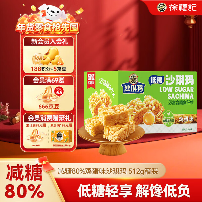 徐福记低糖沙琪玛鸡蛋味箱装512g 减糖80%轻食早餐面包 健康糕点