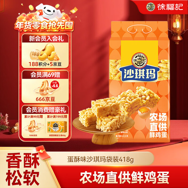 徐福记 沙琪玛 营养早餐休闲零食 蛋酥味沙琪玛418g