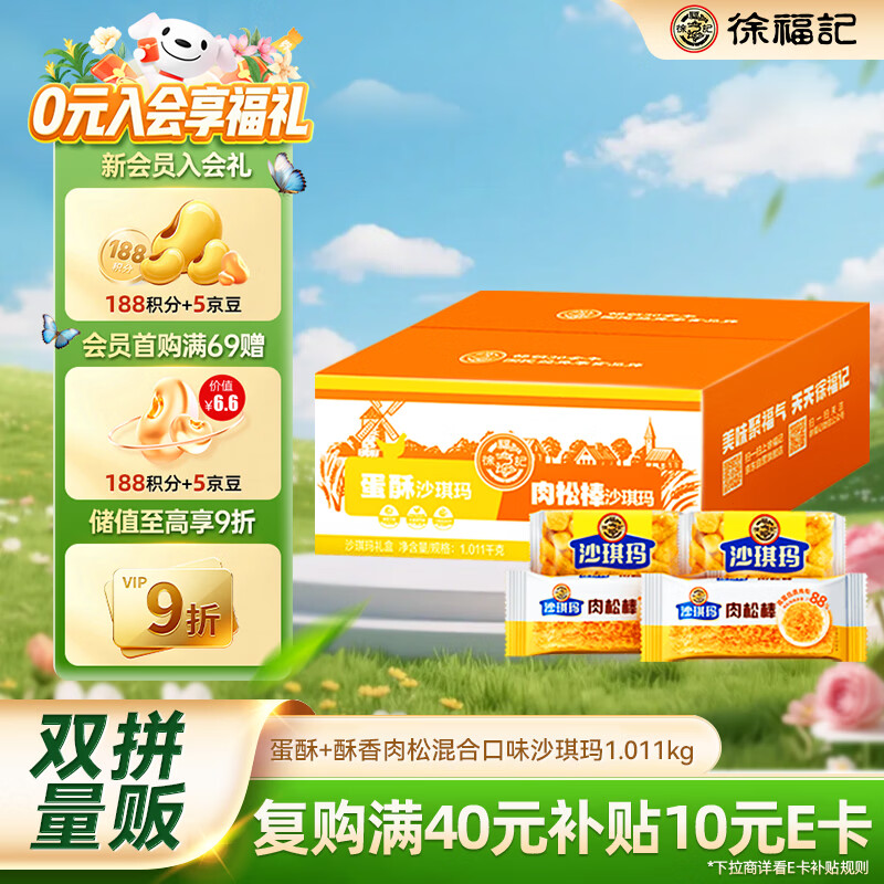 徐福记蛋酥酥香肉松混合口味沙琪玛 箱装1.011kg 43枚零食