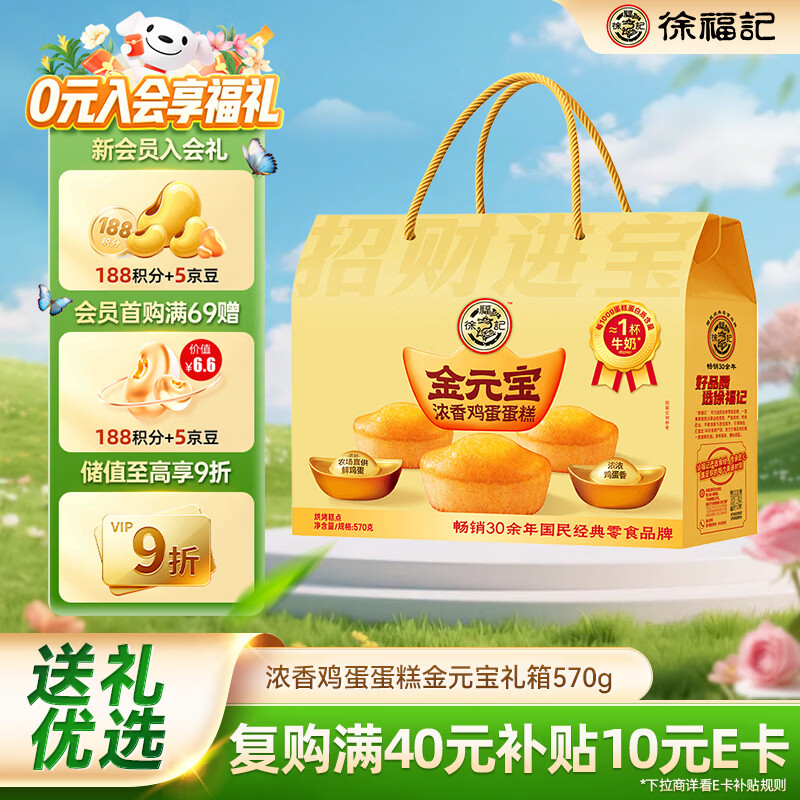 徐福记浓香鸡蛋蛋糕金元宝 招财进宝 黄金蛋糕礼箱570g