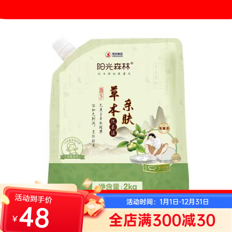 心相印洗衣液阳光森林草本亲肤茶皂素洗衣液清新茶香自然柔顺到家 阳光森林草本亲肤2kg袋装