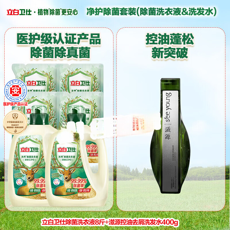 心相印净护套装 卫仕除菌洗衣液8斤+滋源控油去屑洗发水400g 8斤+400g