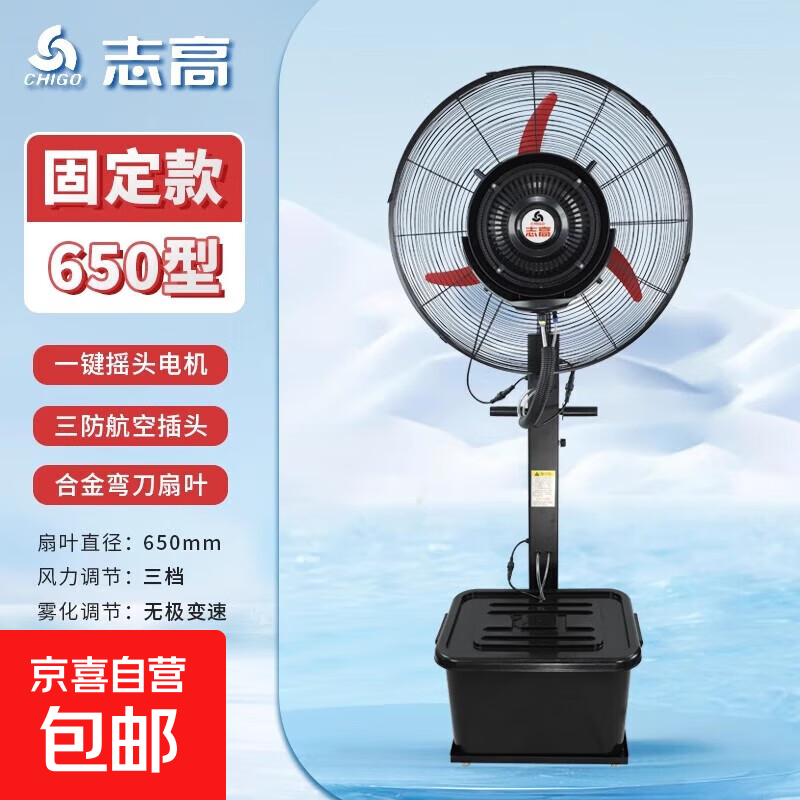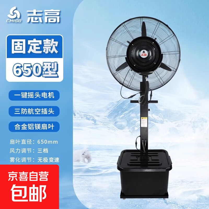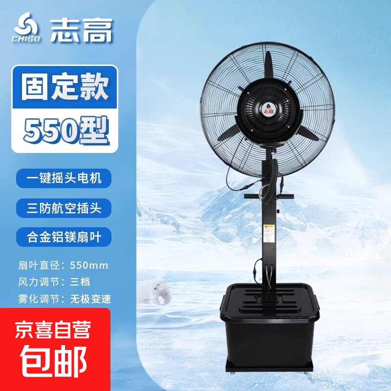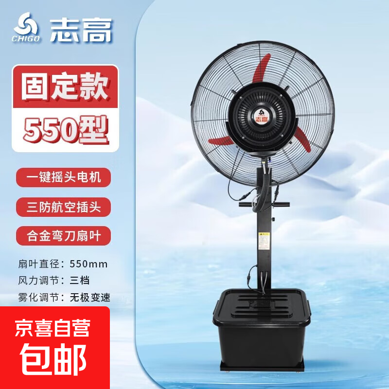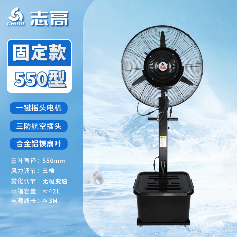 志高(CHIGO)志高工业喷雾风扇强力水冷雾化加冰湿降温商用户外大型落地电风扇 550喷雾扇[固定款]铝镁叶 加长
