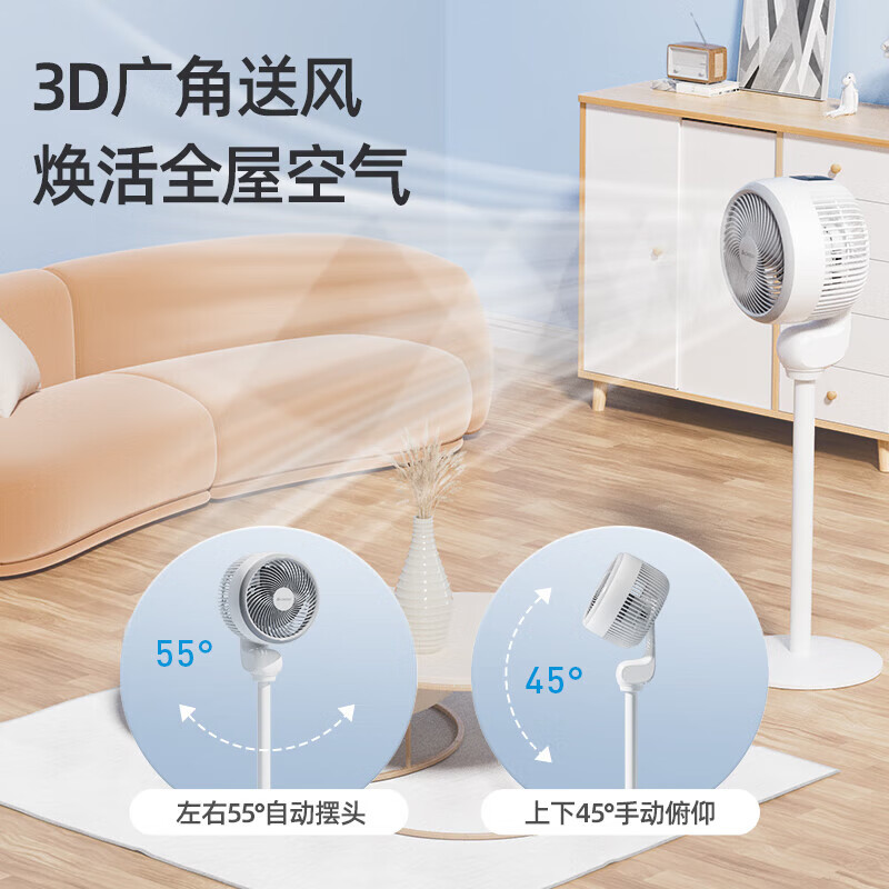 志高(CHIGO)电风扇空气循环扇家用风扇落地电风扇轻音节能台立两用电扇涡轮换气对流俯仰桌面 语音款【负离子+3D摇头+香薰】