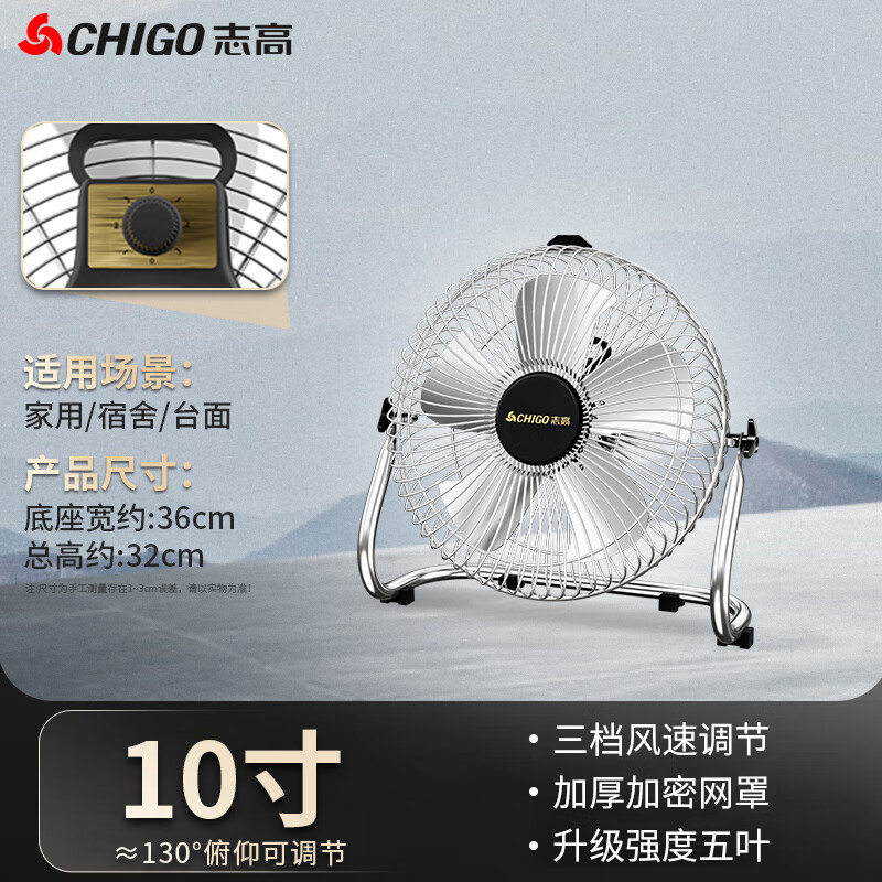 志高(CHIGO)电风扇工业趴地扇强力落地扇家用商用台式坐地大功率工厂爬地扇远距送风加密网罩商业立式趴地电扇 10寸银色趴地扇【五叶 三档 放射网】