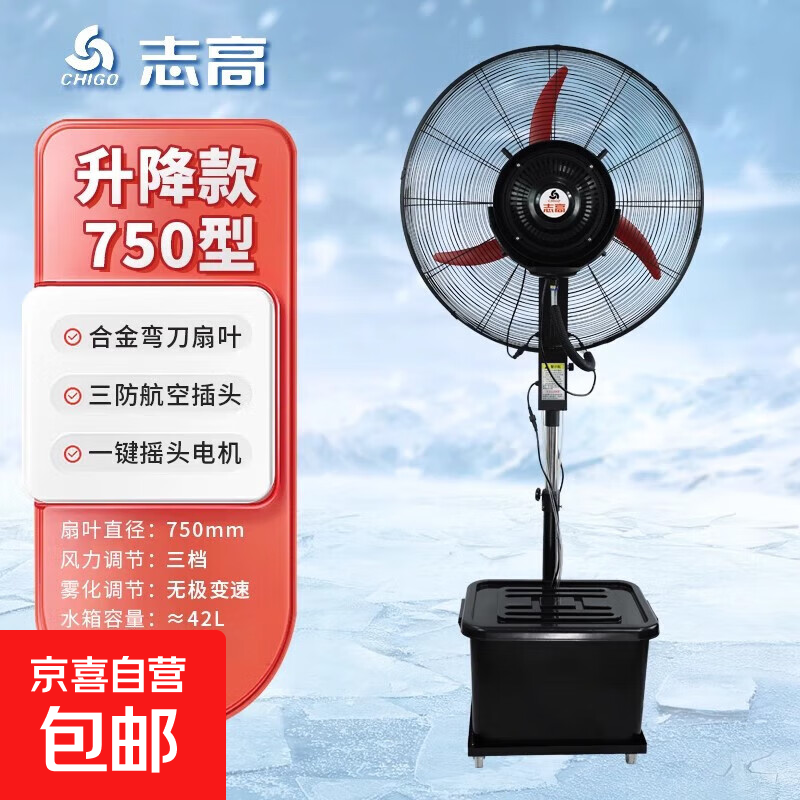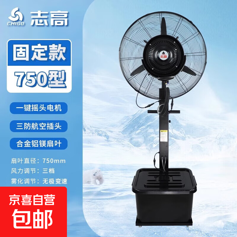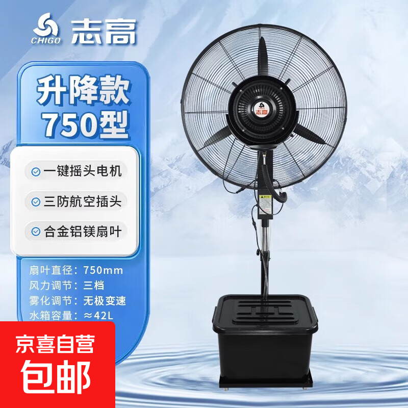 志高(CHIGO)志高工业喷雾风扇强力水冷雾化加冰湿降温商用户外大型落地电风扇 750喷雾扇[升降款]铝镁叶 加长
