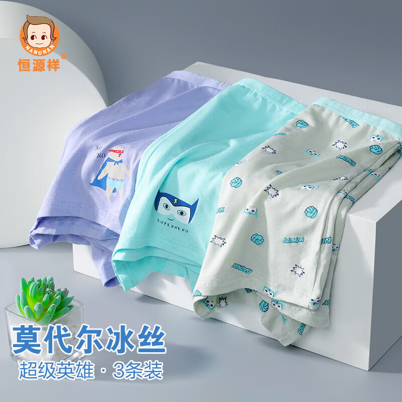 恒源祥冰丝儿童内裤夏季男童莫代尔平角短裤薄款四角裤头超级英雄150