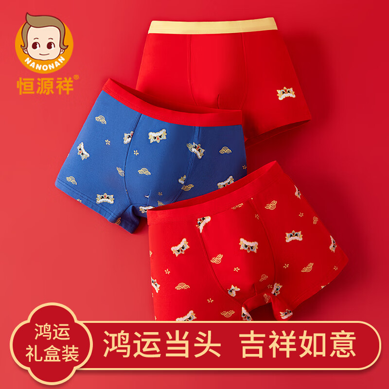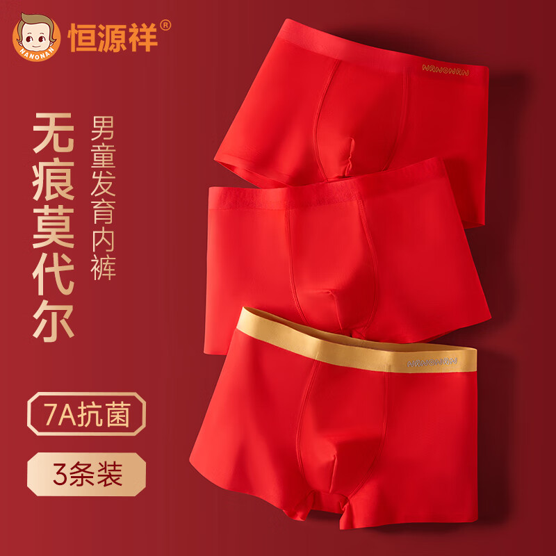 恒源祥儿童内裤男童本命年大红莫代尔四角短裤抑菌透气男学生成长裤头 【7A抗菌】吉祥如意 3条 165 (推荐体重85-95斤)