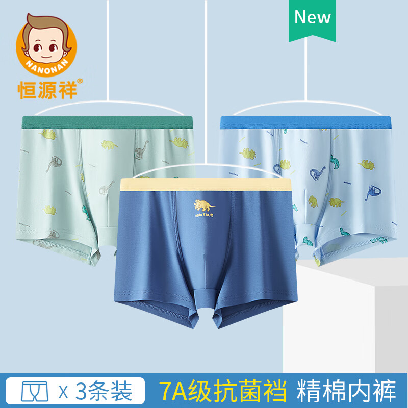 恒源祥儿童内裤男童青少年平角四角男孩95%棉质透气舒适7A抑菌3条