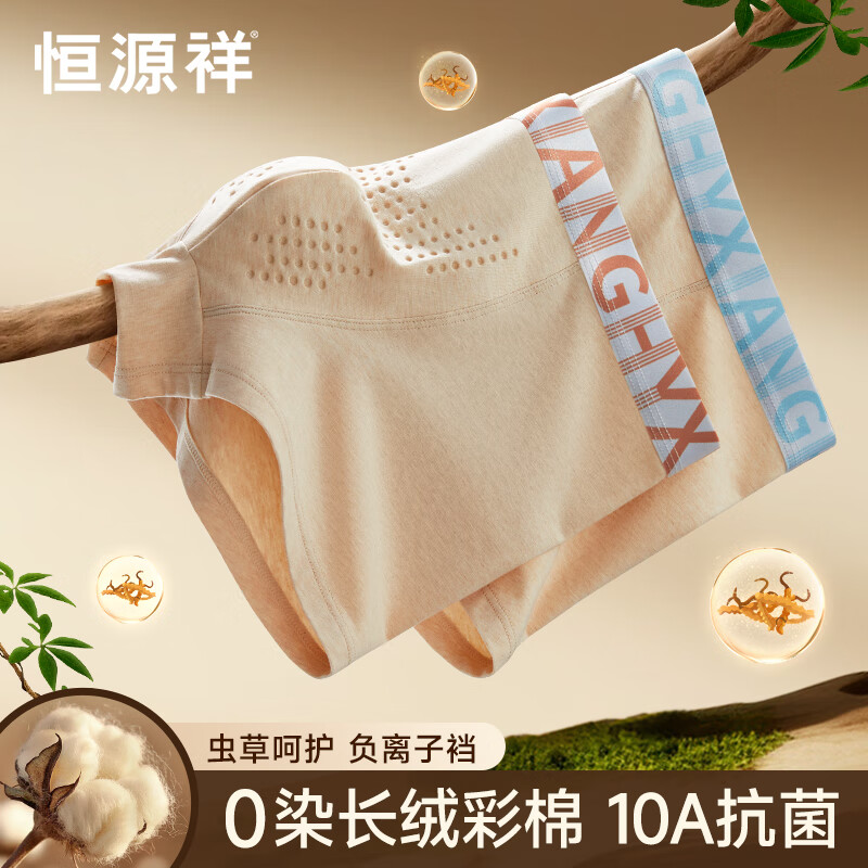 恒源祥男士内裤虫草升级天然彩棉10A抗菌平角裤青年大码短裤
