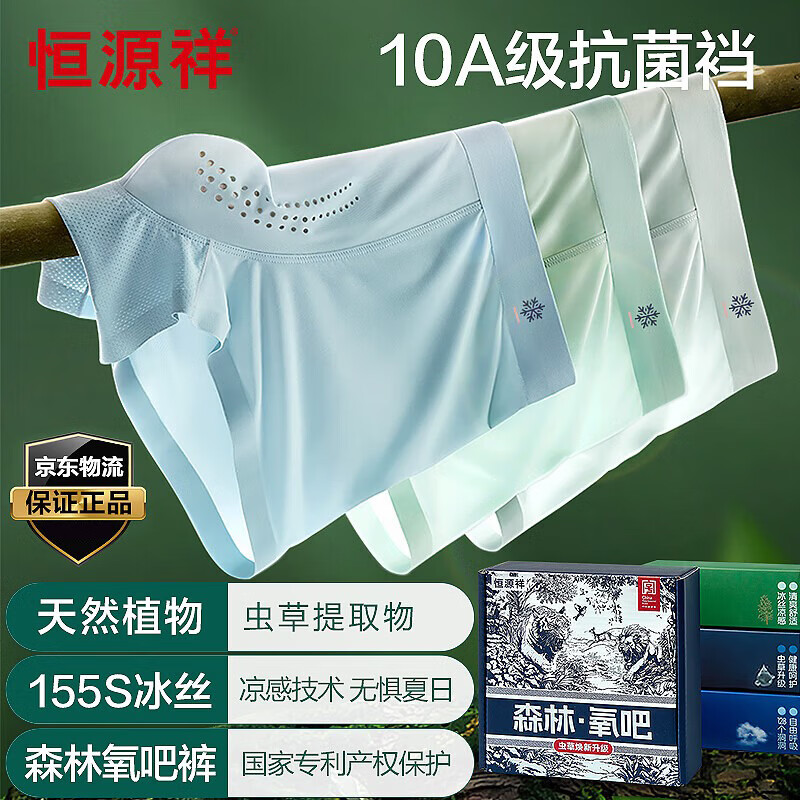 恒源祥男士内裤【虫草养护】森林氧吧凉感薄款冰丝无痕透气10A抗菌礼盒
