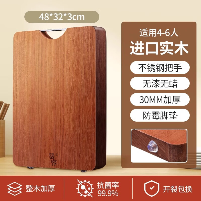 慕容世家乌檀木菜板实木砧板厨房占粘板切菜板抗菌防霉家用整木刀板大案板 【抗菌防霉-整木加厚】48*32*3cm
