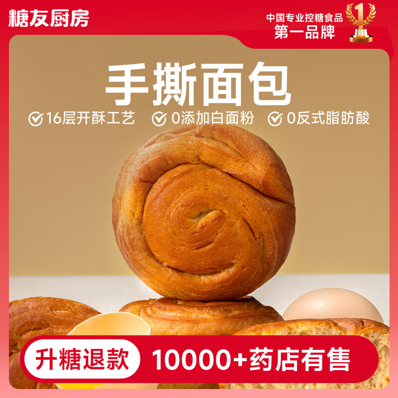 糖友厨房手撕面包低GI早中晚代餐无糖精孕妇糖人休闲零食品210g