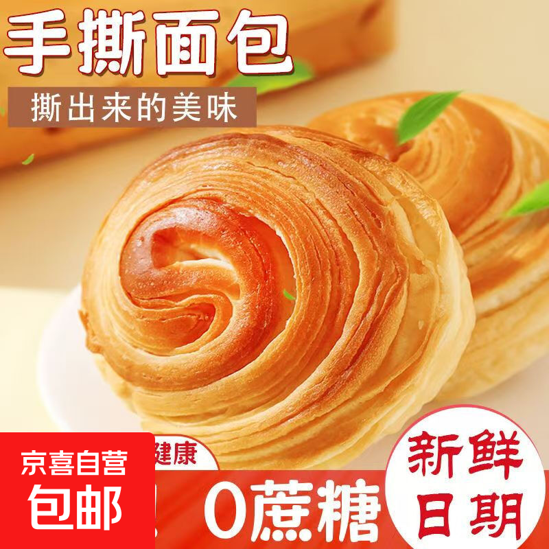 百草味-华夫饼1000g肉松饼乳酪吐司手撕酵母软面包早餐糕点下午茶 手撕面包1000g约25枚 1000g