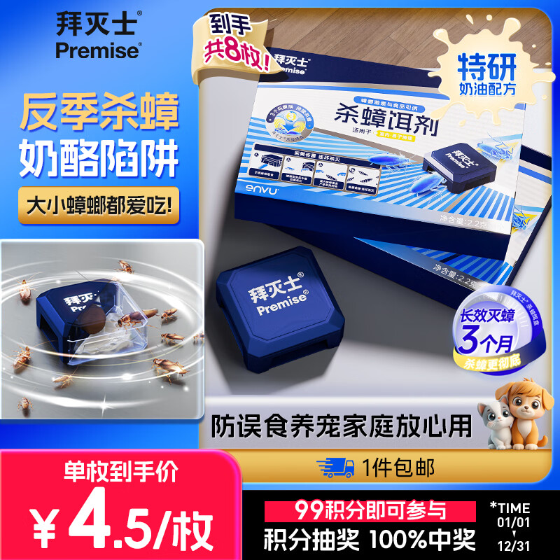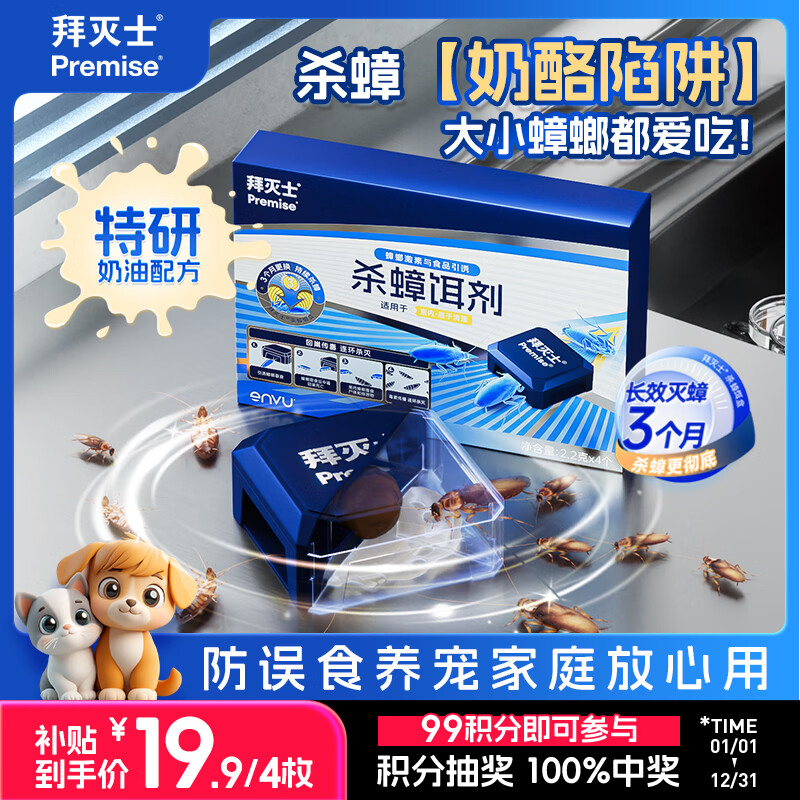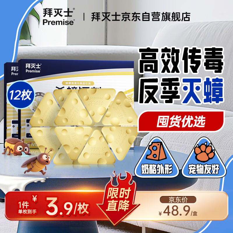 拜灭士蟑螂药奶酪杀蟑饵剂12枚蟑螂屋室内全窝端大小蟑螂诱饵盒热门商品