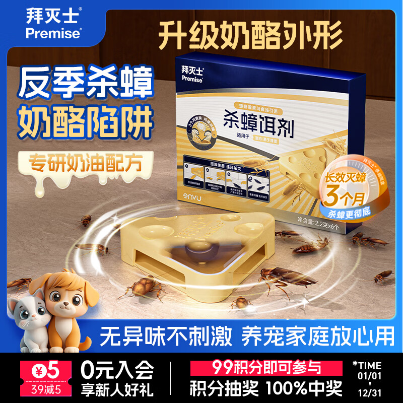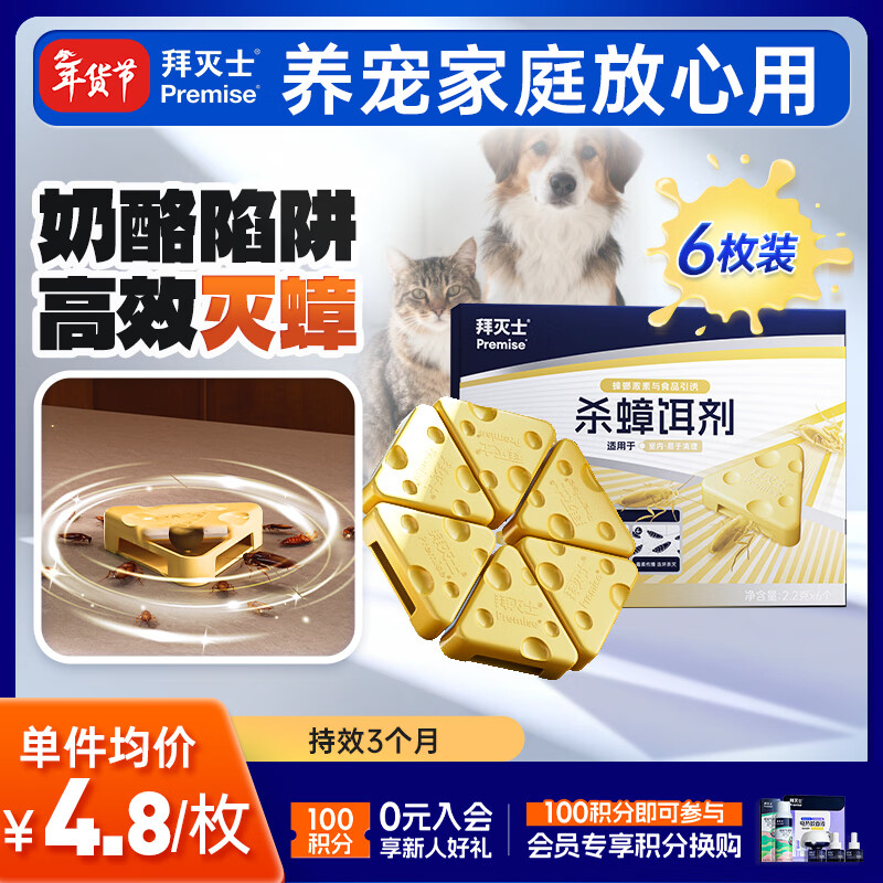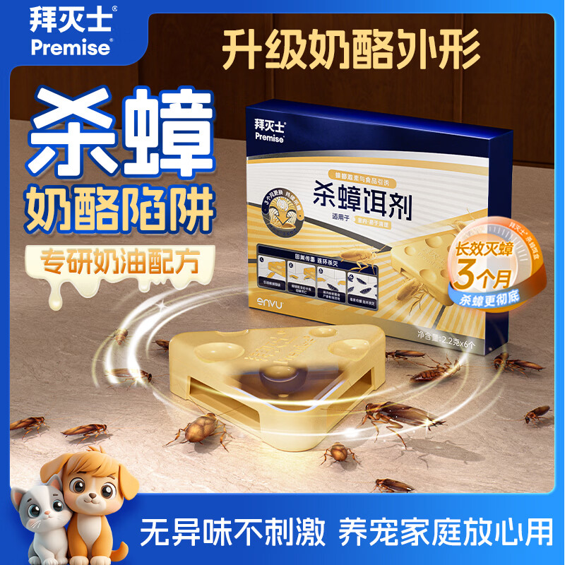 拜灭士蟑螂药奶酪杀蟑饵剂6枚蟑螂屋室内全窝端大小蟑螂诱饵盒热门商品