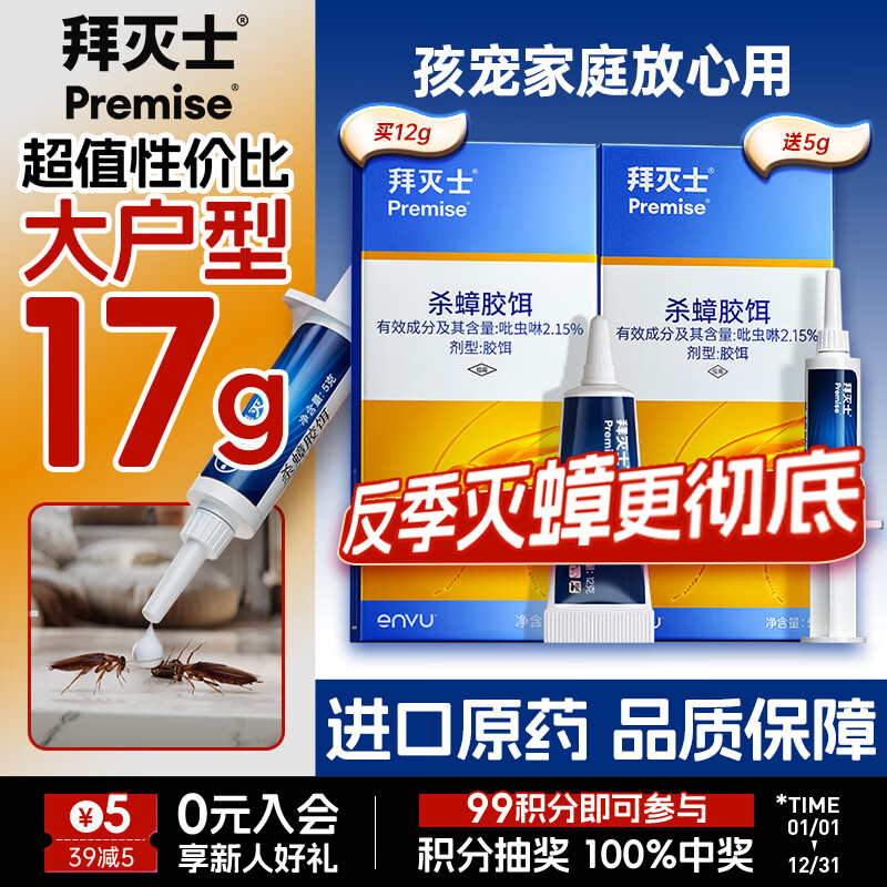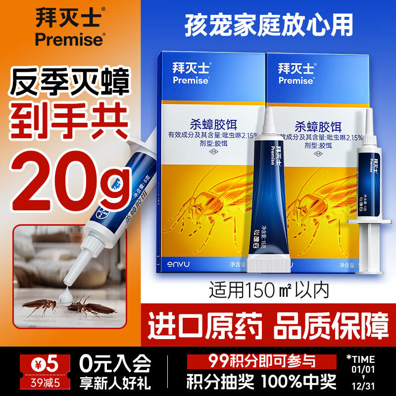 拜灭士拜耳蟑螂药杀蟑胶饵5g一窝室内全窝端虫卵双杀宠物友好热门商品