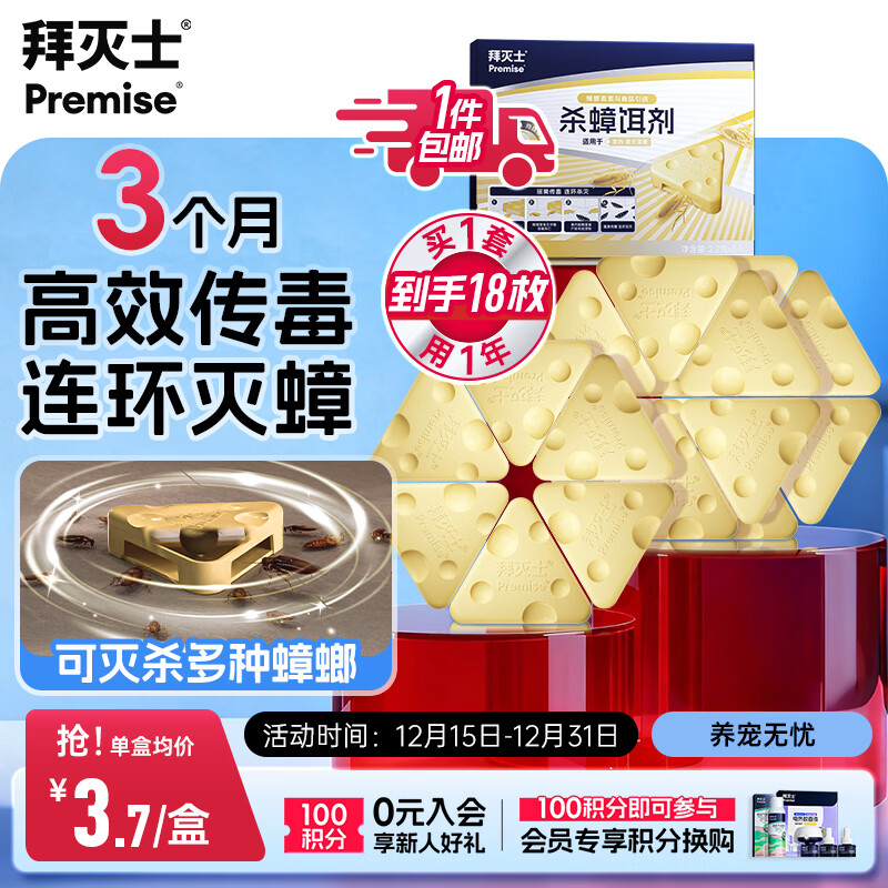 拜灭士蟑螂药奶酪杀蟑饵剂18枚蟑螂屋室内全窝端大小蟑螂诱饵盒热门商品