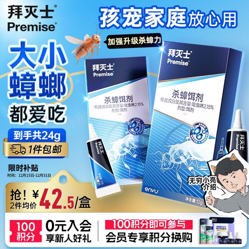 拜灭士拜耳蟑螂药杀蟑胶饵12g一窝室内全窝端虫卵双杀宠物友好热门商品