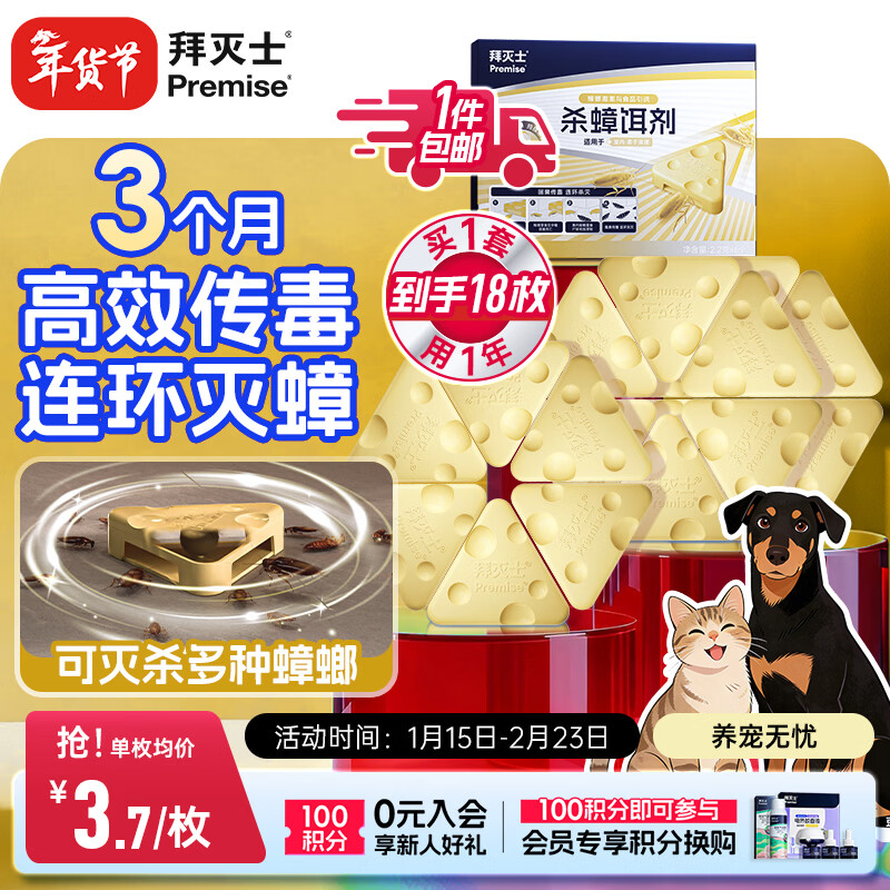 拜灭士蟑螂药奶酪杀蟑饵剂18枚蟑螂屋全窝室内端大小蟑螂诱饵盒热门商品