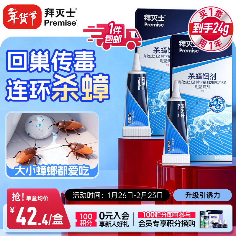 拜灭士热门商品拜耳蟑螂药虫卵双杀12g*2灭杀蟑螂胶饵室内厨房连环诱杀