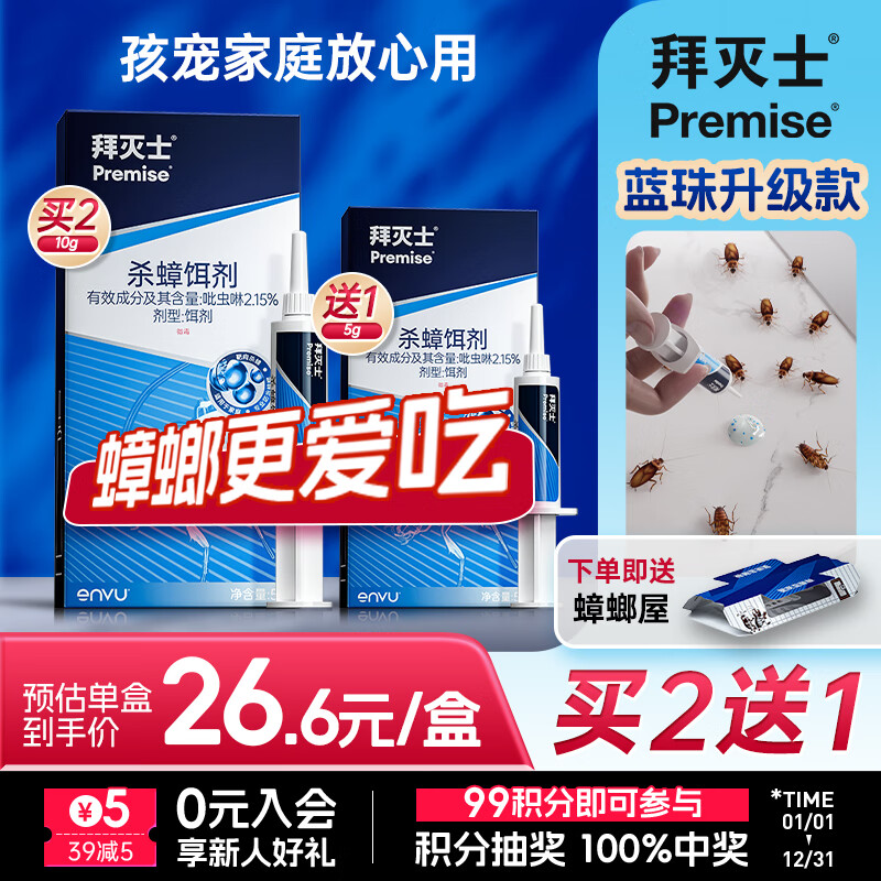 拜灭士拜耳蟑螂药蓝珠杀蟑胶饵5g灭蟑虫卵双杀室内一窝端家用热门商品