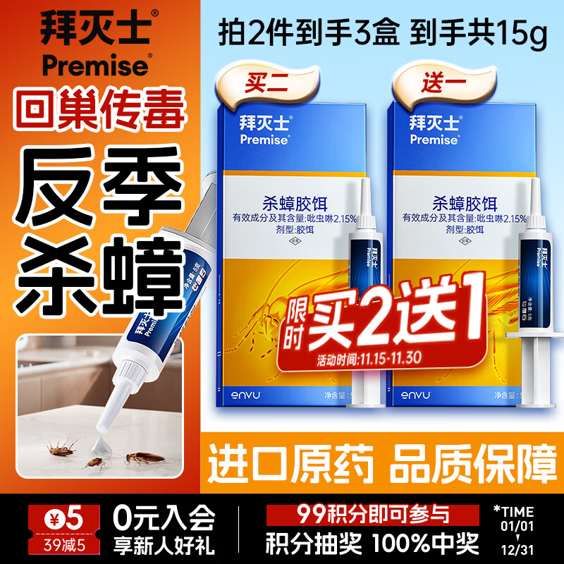 拜灭士德国拜耳蟑螂药杀虫剂蟑螂屋胶饵家用杀蟑胶饵全窝室内端热门商品 【买2送1】杀蟑胶饵5g