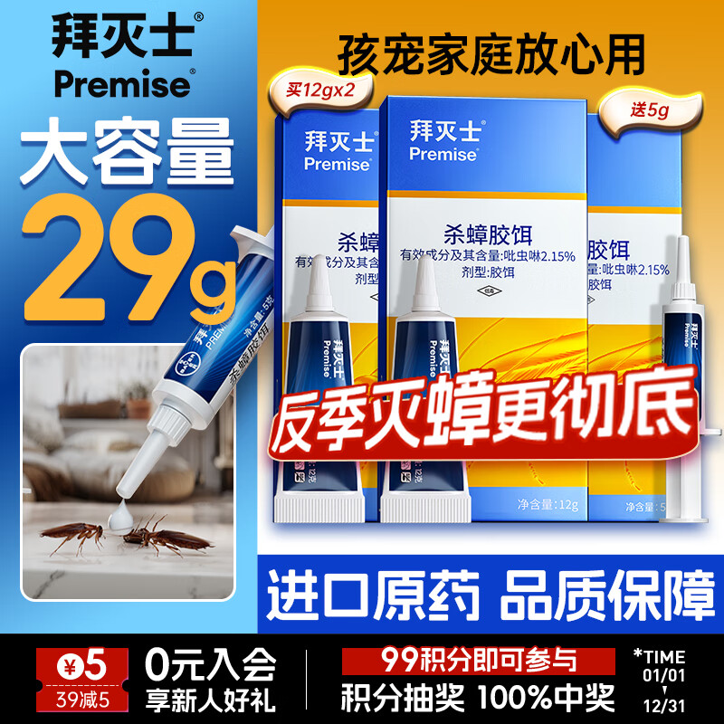 拜灭士德国拜耳蟑螂药杀虫剂杀蟑胶饵家用厨房全窝室内端除蟑螂饵剂 【大容量29g】杀蟑12g*2+5g