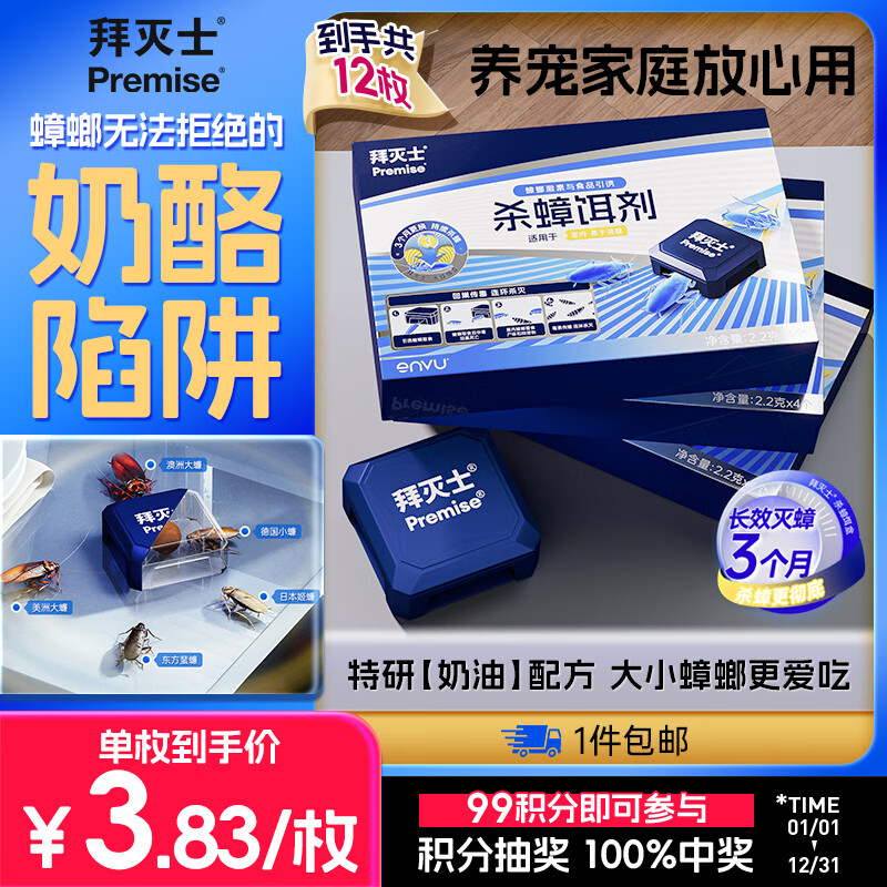 拜灭士蟑螂药奶酪杀蟑饵剂12枚蟑螂屋全窝室内端大小蟑螂诱饵盒热门商品
