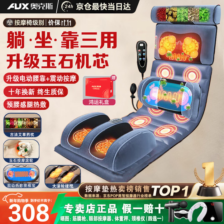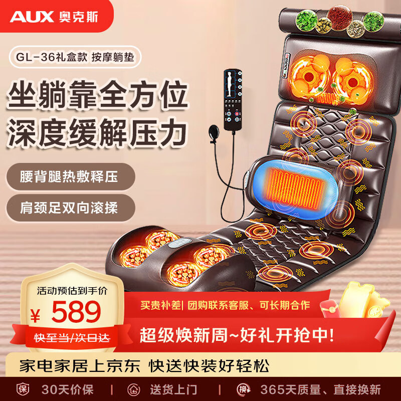 奥克斯(AUX)颈椎按摩器按摩垫GL-36(礼盒装)家用全身躺垫按摩椅腰背部全自动按摩 实用生日礼物