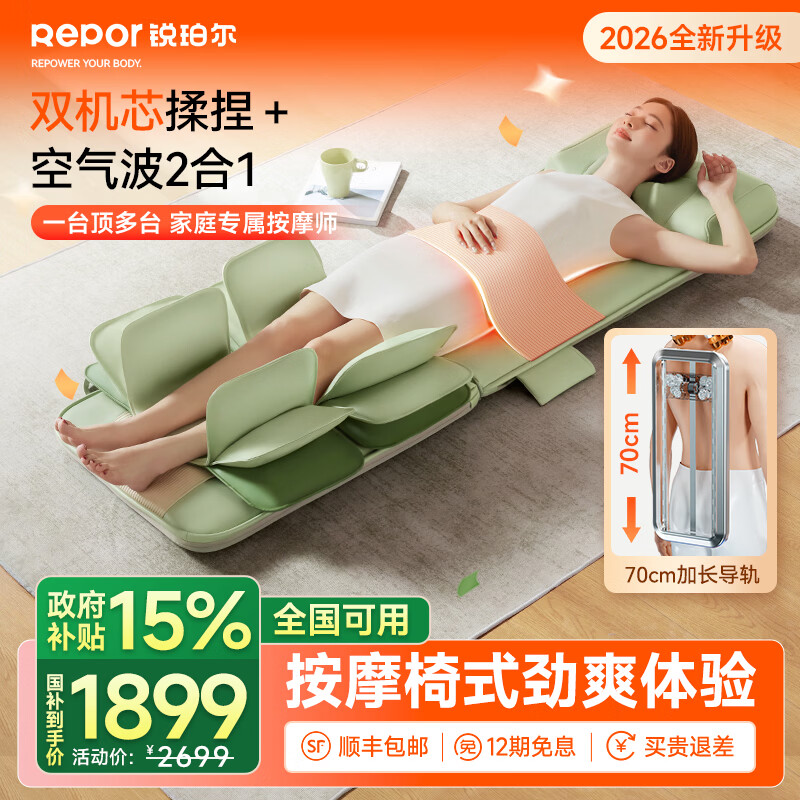 锐珀尔(Repor)O5按摩垫全身躺垫椅导轨床上按摩椅家用迷你颈椎腰部背部热敷气囊按摩仪器 母亲节礼物送长辈妈妈 双芯联动【颈部仿人手揉捏+腰背部柔性导轨】