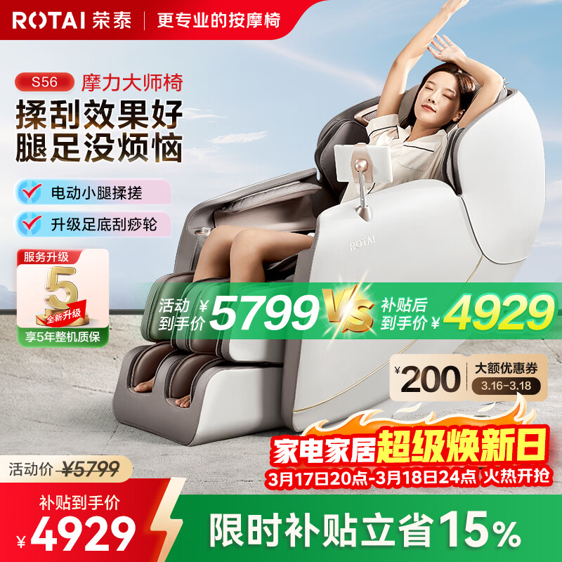 荣泰(RONGTAI)【上市企业】按摩椅家用全身按摩全自动2026老人用按摩沙发送父母生日礼物 S56pro 杏仁灰