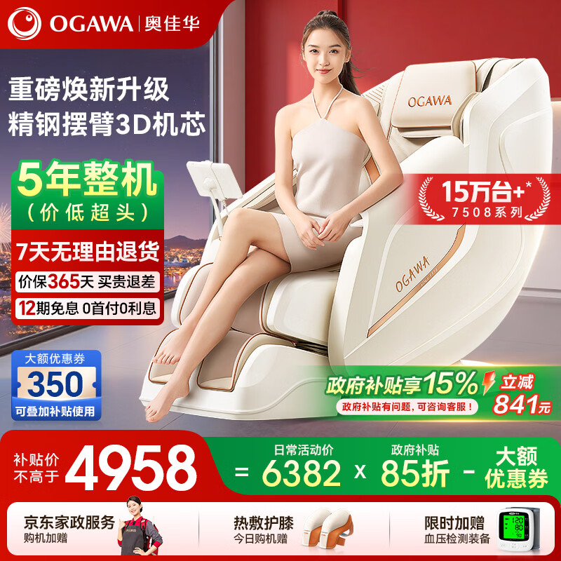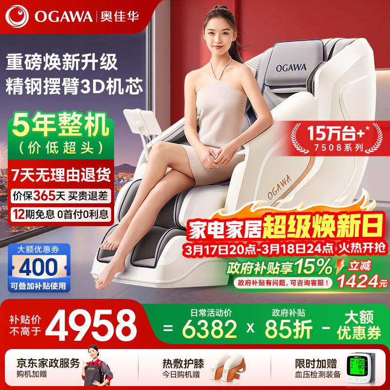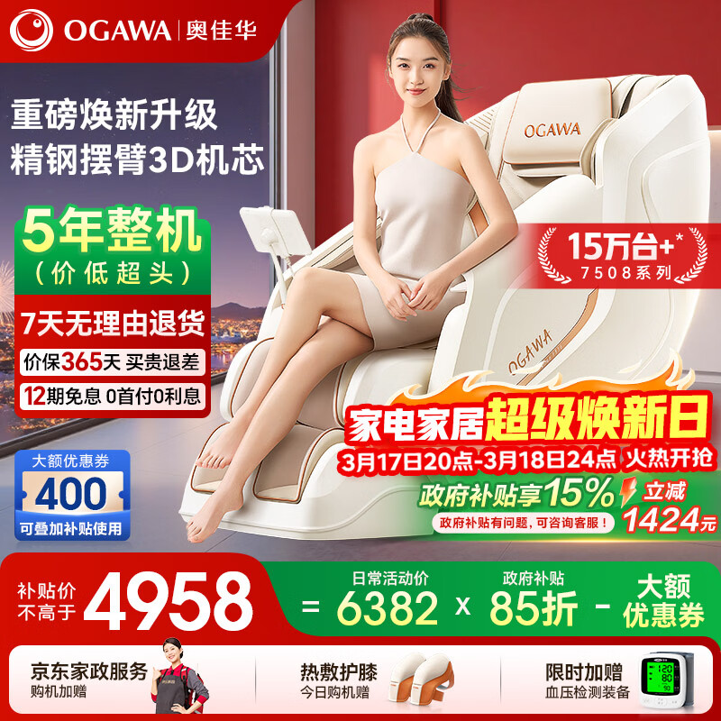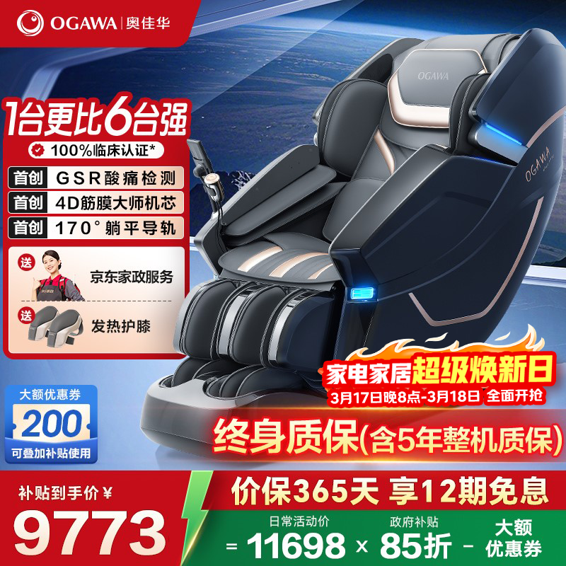 奥佳华(OGAWA)家电国家补贴按摩椅家用全身按摩全自动太空舱躺椅沙发3D机芯养生送父母节日礼物OG7508Pro+卓越版 流光雅杏【12个工作日内发出】