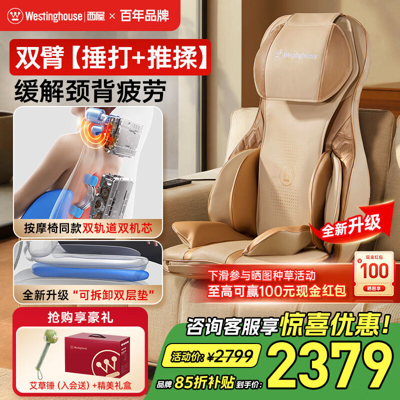 西屋(Westinghouse)分体按摩椅S180/S150按摩靠垫办公室肩颈按摩器腰背臀全身按摩家用按摩仪气囊按摩垫长辈送礼 【双垫提升体验】S180欧米伽-捶背揉肩 【双轨双臂按摩,泰式揉捶大师】