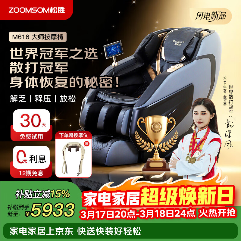 松胜m616按摩椅家用放松堡功夫椅太空舱2026全身按摩全自动家用小型沙发按摩器躺椅送长辈老人礼物 M616/24种按摩程序/适合1.6至1.8米人群