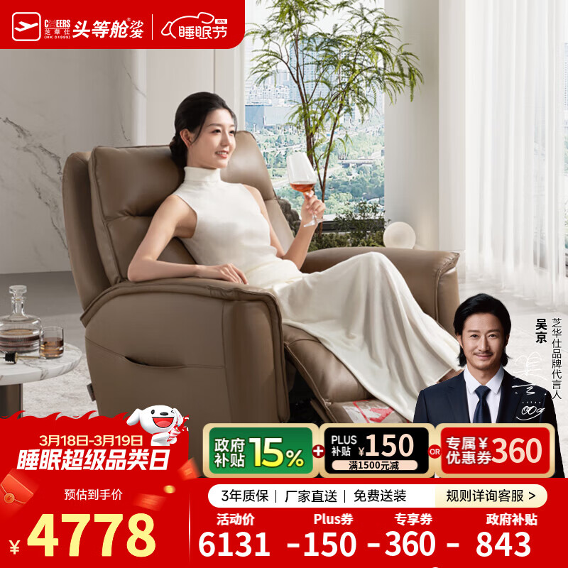 芝华仕皮单椅头等舱真皮单人沙发智能椅电动功能按摩椅30751芝华士 拿铁咖-电动躺+调头顶腰+气囊按摩 延期发货(详询客服)