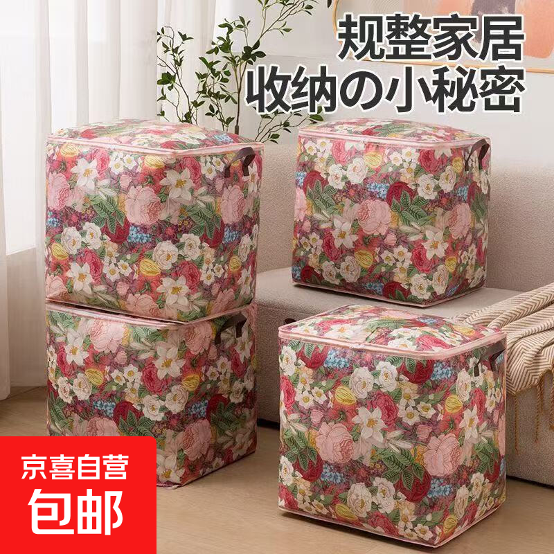 京东物流 衣物收纳箱超大容量衣物棉被收纳袋防尘可折叠收纳神器 100L 活动款 尺寸 45*38*45cm