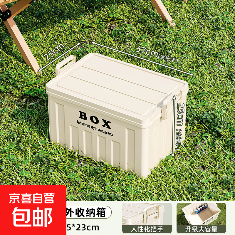 露营收纳箱车载储物箱汽车后备箱整理箱户外野营野餐大号置物箱子 【奶油白】 37*25*23cm 1个装