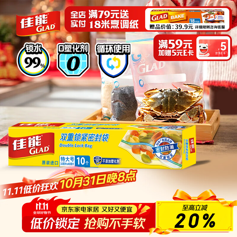 佳能(Glad)食品级密封袋特大号10个 自封密封袋 用途分装袋收纳袋 HP638C